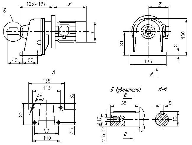 Размеры цилиндрического мотор-редуктора 7МЦ2 - 37.
