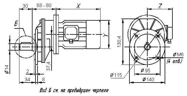 Размеры цилиндрического мотор-редуктора 7МЦ - 37.