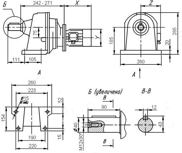 Размеры цилиндрического мотор-редуктора 7МЦ3 - 90.