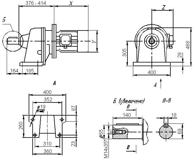 Размеры цилиндрического мотор-редуктора 7МЦ2 - 150.