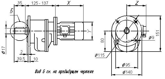 Размеры цилиндрического мотор-редуктора 7МЦ2 - 37.