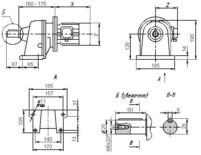 Размеры цилиндрического мотор-редуктора 7МЦ2 - 60.