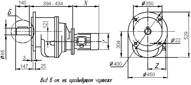 Размеры цилиндрического мотор-редуктора 7МЦ3 - 150.