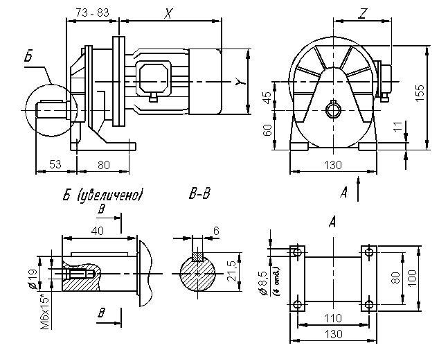 Размеры цилиндрического мотор-редуктора 7МЦ - 45.