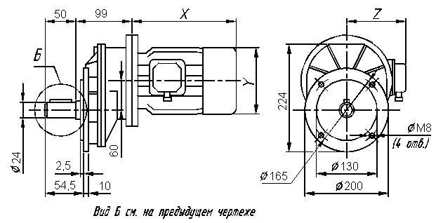 Размеры цилиндрического мотор-редуктора 7МЦ - 60.