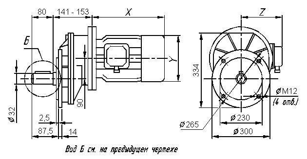 Размеры цилиндрического мотор-редуктора 7МЦ - 90.