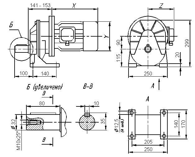 Размеры цилиндрического мотор-редуктора 7МЦ - 90.
