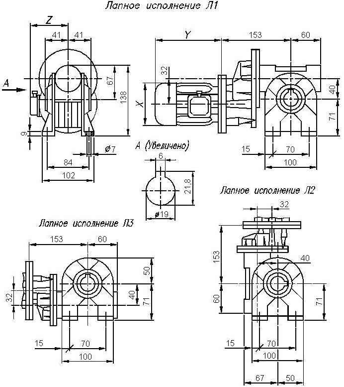 Размеры цилиндро-червячного мотор-редуктора 7МЦЧ-М-32/40.