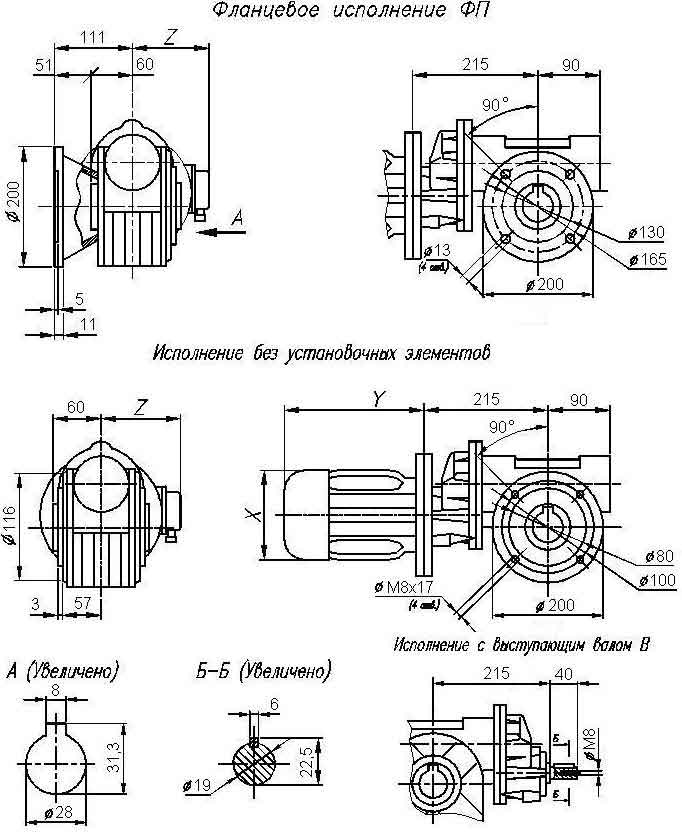 Размеры цилиндро-червячного мотор-редуктора 7МЦЧ-М-50/70.